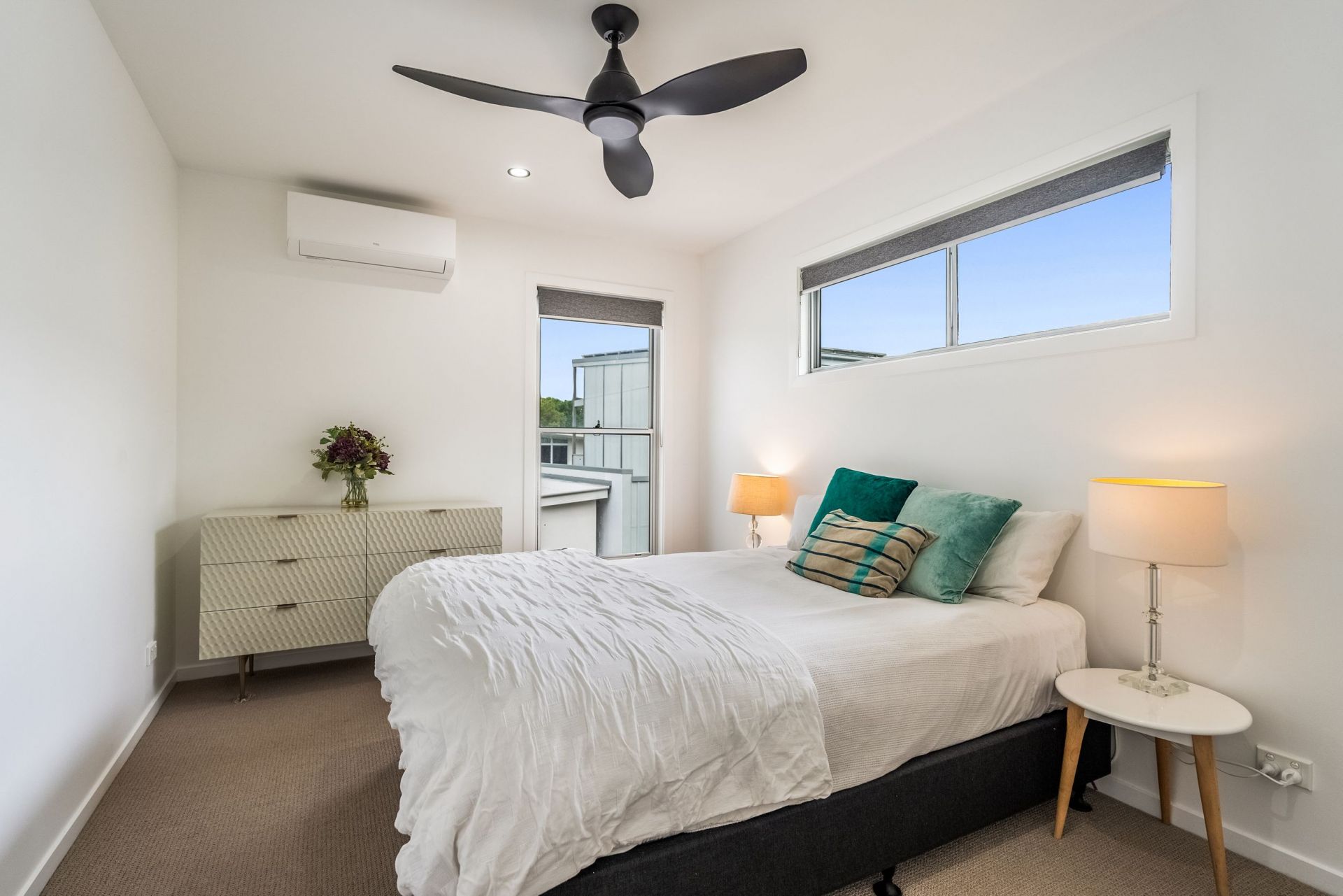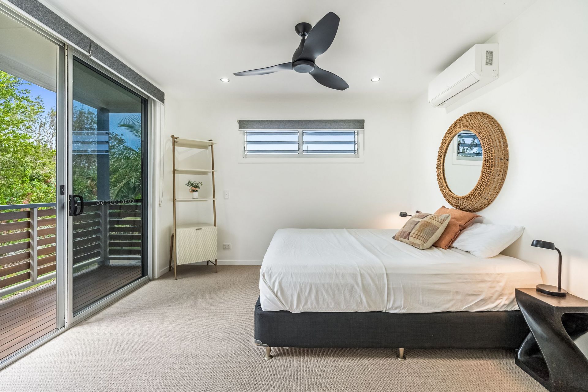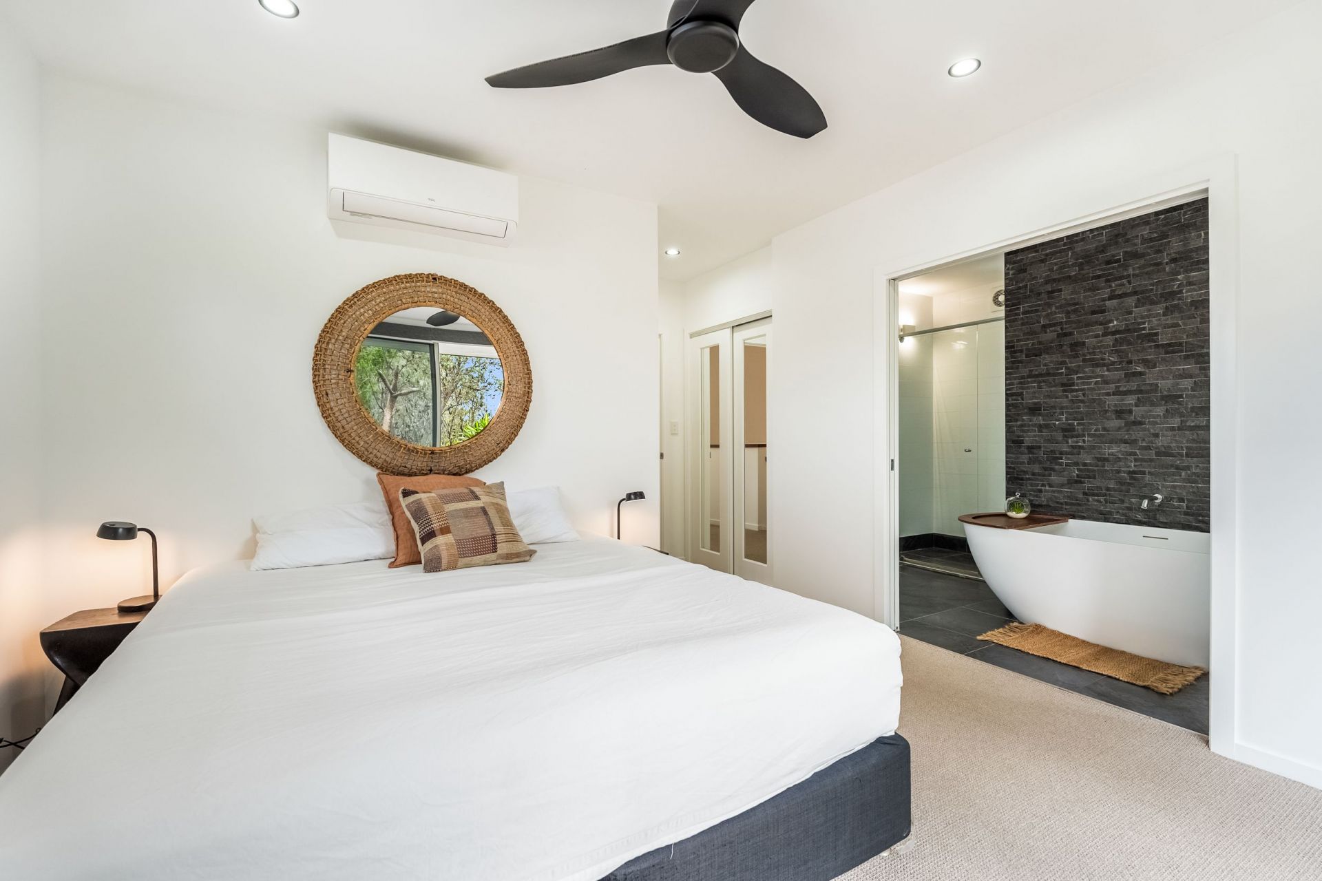 Accommodation is generous and flexible. The master suite is privately positioned and appointed with a walk-in robe, balcony and refined ensuite with freestanding bath. Two additional bedrooms are well proportioned and serviced by a stylish main bathroom. A separately accessed studio with ensuite adds valuable versatility for guests, executive retreat or creative workspace.