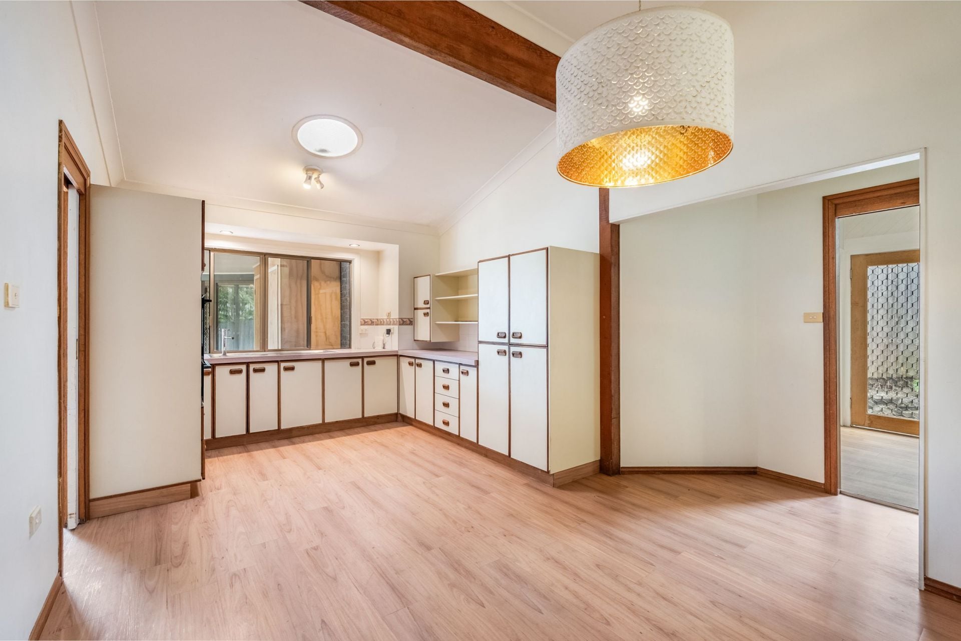 At the heart of the home, the original kitchen retains its character with beautiful Tassie Oak features, a built-in wall oven, and a new stainless-steel hotplate - offering functionality while preserving its warm, inviting feel.