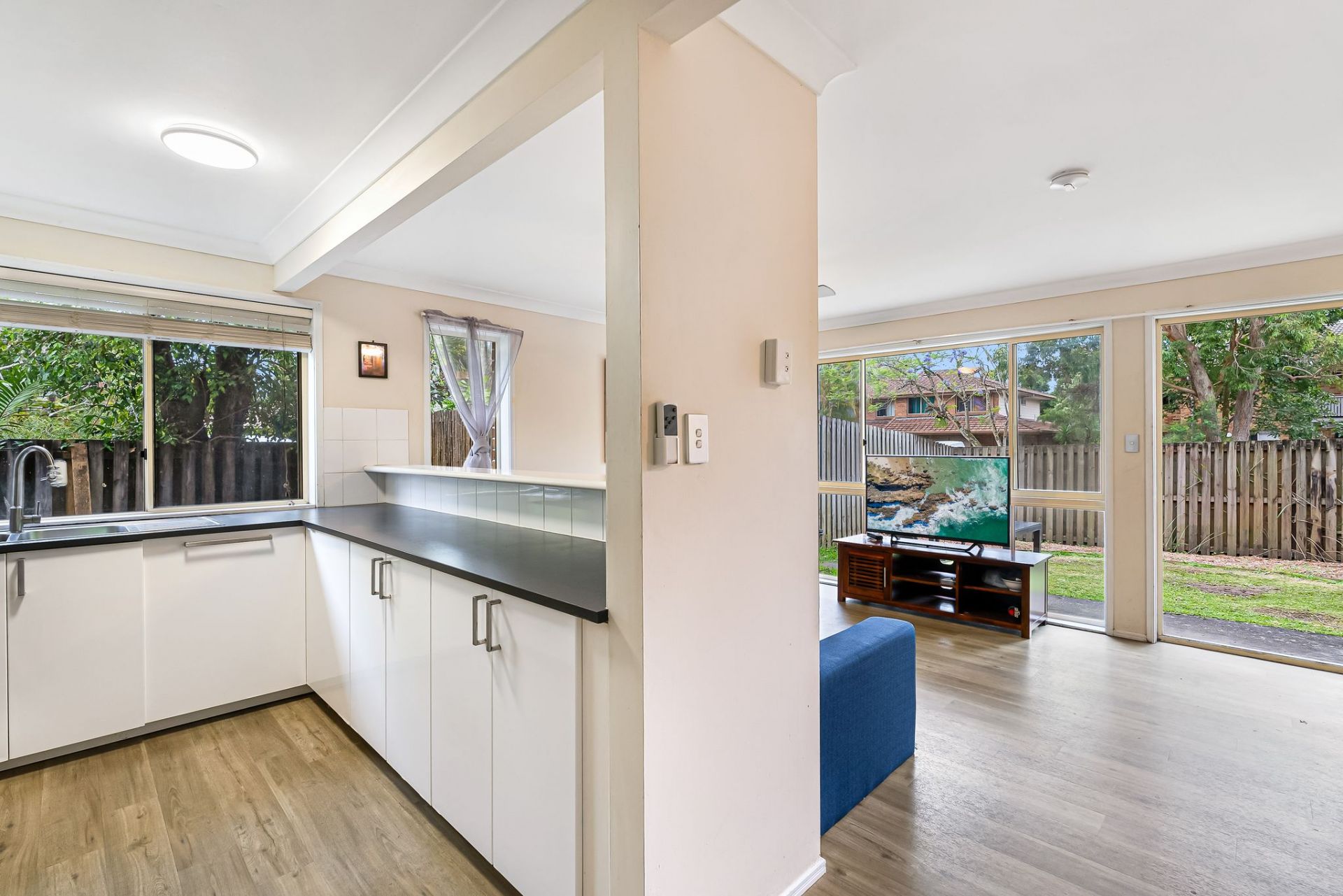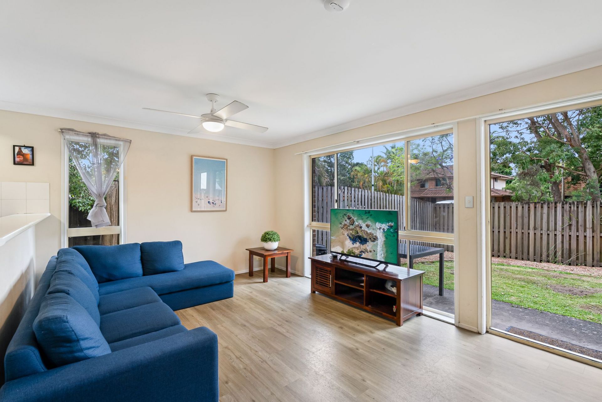 Ideal for those eager to enter the Byron Bay property market, this north-facing townhouse suits both first-time buyers and investors. The home is designed for effortless living with a bright, airy open-plan layout. The well-lit galley-style kitchen features ample natural light and a breakfast bar. The living area opens to a private, grassy courtyard, perfect for entertaining or relaxing. A separate laundry with a second toilet adds convenience.