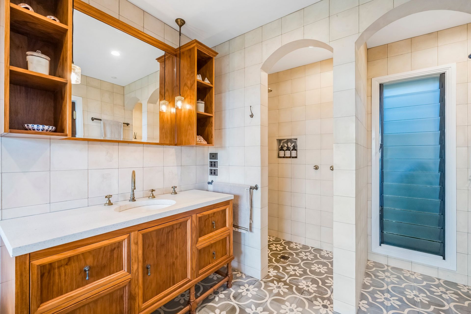 - Expansive north-facing aspect capturing rolling hinterland views with ocean glimpses; lush tropical gardens, fruit trees, and curated landscaping