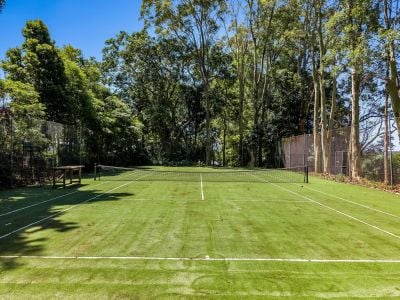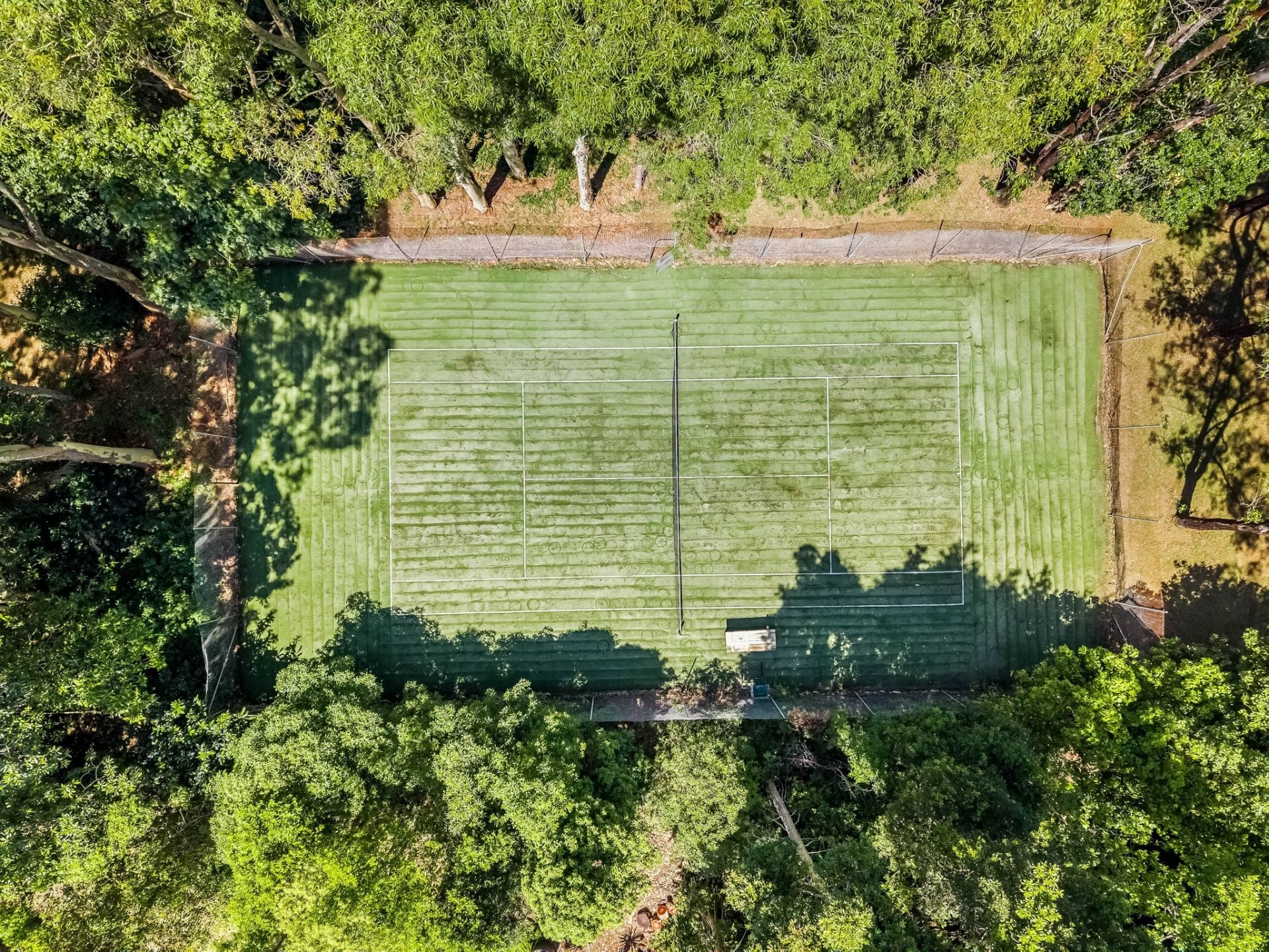 Outside, the property unfolds into a private resort environment. A sparkling pool, full-size tennis court, and the enchanting ensuited Tree House pavilion create an idyllic retreat for guests, creative pursuits, or wellness escapes.