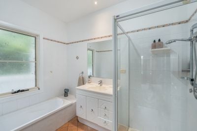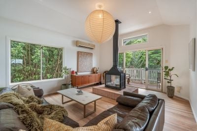 Step outside and the connection to nature continues. A sparkling salt-water inground pool sits perfectly within the landscape, while nearby walking tracks wind through the neighbouring land down to a quiet creek - a daily ritual that never loses its charm.