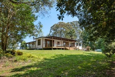 Perched high on the hilltop in the Byron Hinterland, on a 1-acre parcel, this character home offers privacy, north-facing elevation, and comfort in a peaceful rural setting - well out of any flood zone. The property is set on a flat, expansive block, and combines timeless charm with modern touches, making it an ideal sanctuary for families or those seeking a serene tree-change lifestyle.