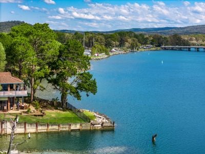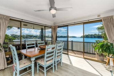 The solid two-storey brick home embraces relaxed riverside living with spacious interiors and a flexible layout designed to maximise the outlook. Upstairs, the open-plan kitchen, living, and dining area opens to a wide covered deck – the ideal spot to soak in the everchanging river scenery. Five bedrooms span both levels, while downstairs includes a second kitchen, bathroom, and a large covered patio – perfect for dual living or hosting guests.