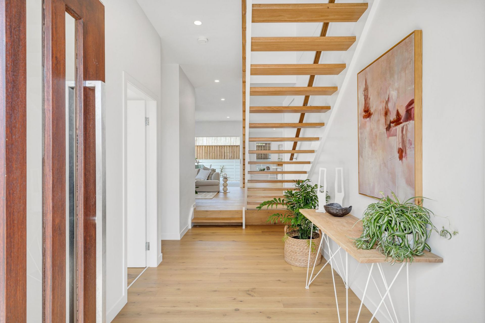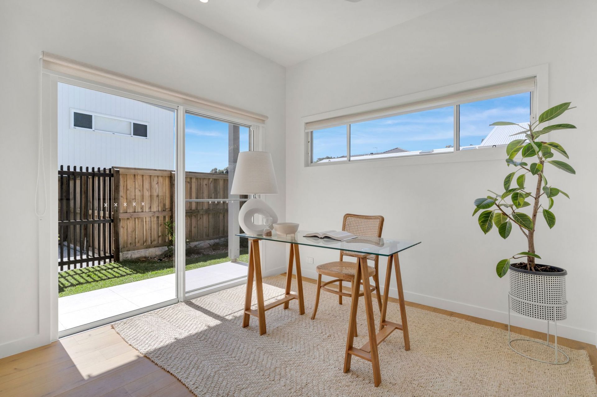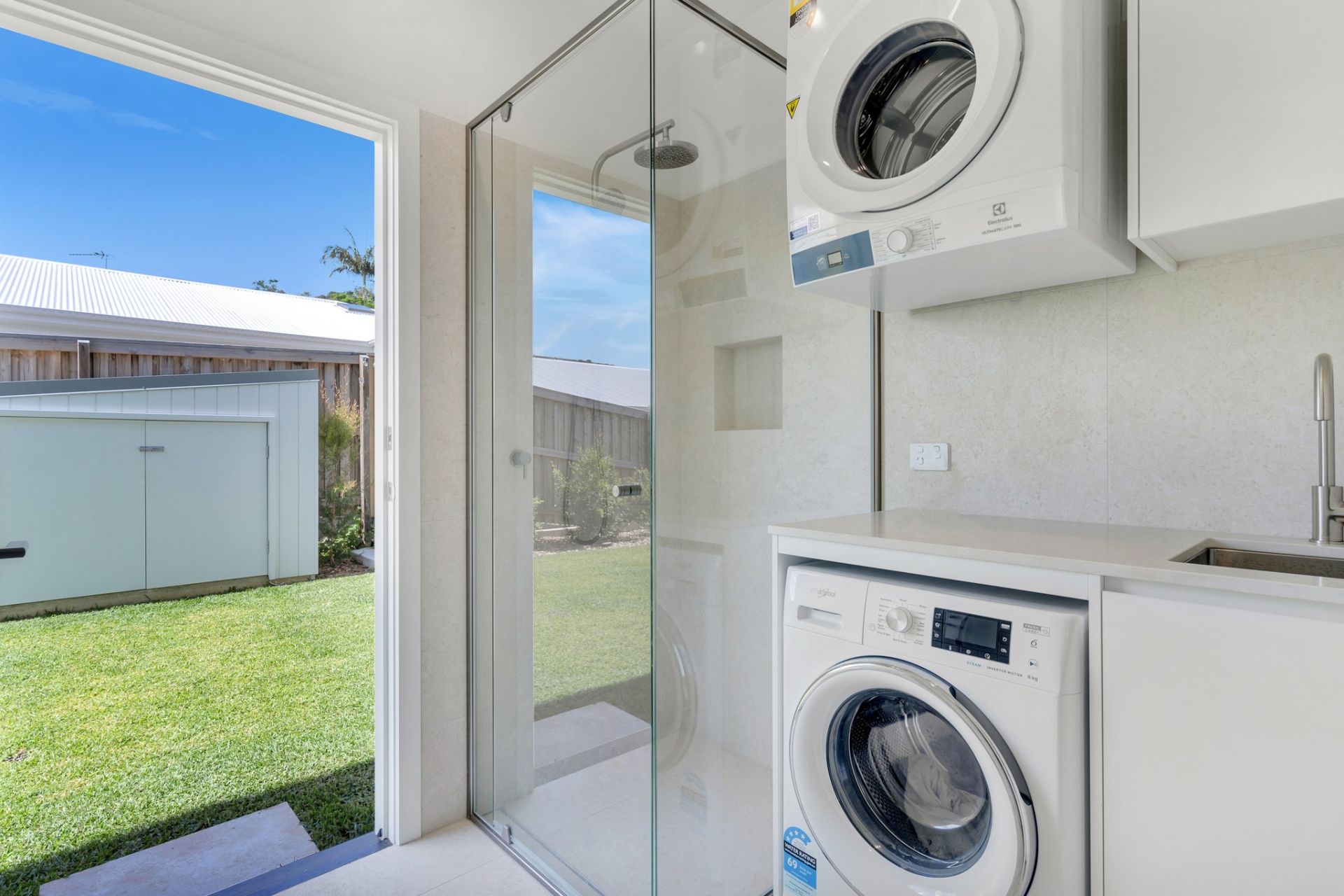 The spacious two-storey layout boasts quality finishes throughout. The main level features an open-plan kitchen, dining, and living area that seamlessly opens to a covered north-east-facing patio, overlooking a 5x2.5m magnesium in-ground pool and a low-maintenance yard. This floor also includes a bedroom, a powder room, and a practical laundry with a shower and yard access, perfect for rinsing off after a swim.