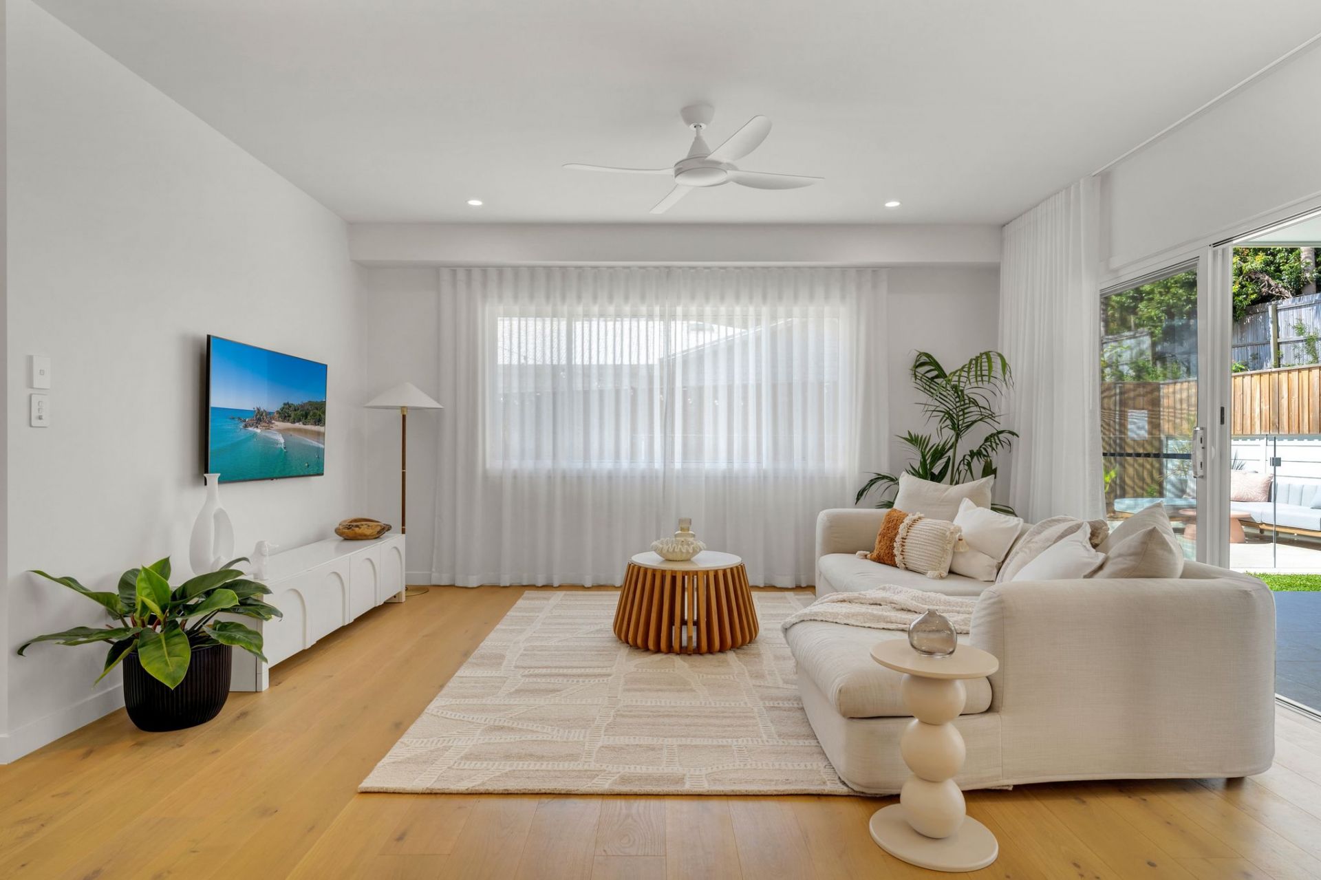 Additional features include a combination of blinds, shutters, and sheer curtains, ducted air-conditioning, ceiling fans, a 6.6kW solar system, instantaneous gas hot water, NBN connection, and a double garage.
