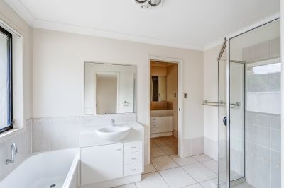 The private master bedroom has an ensuite with spa bath, walk in wardrobe, and glass sliding doors to the outdoor covered area.